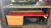 Camperizada con cama y armarios laterales en la parte superior.